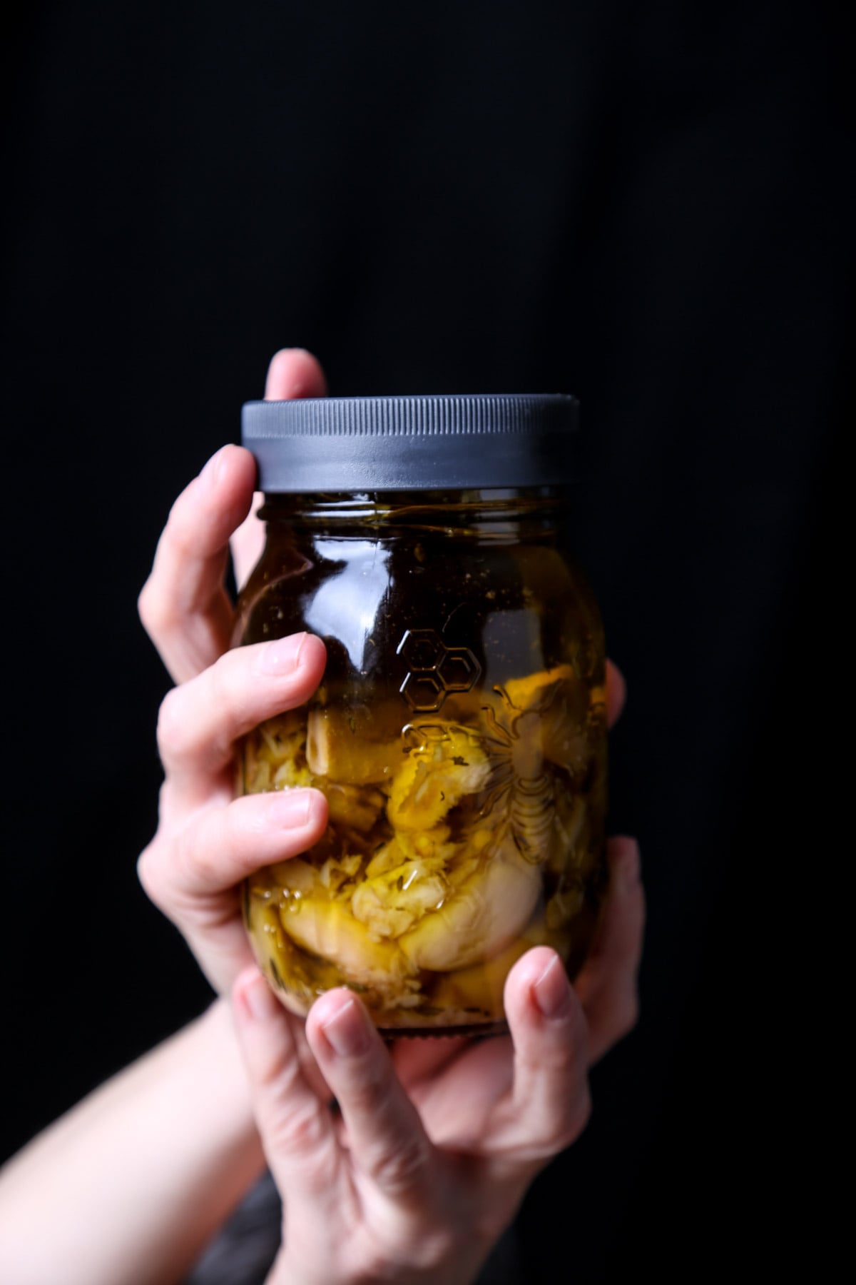 - 2 cups olive oil (enough to fully submerge the garlic)