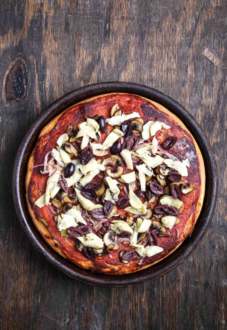 In Turin, Italy, this pizza is known for its tall, thick dough that is baked in the oven inside a small round aluminum (or iron) pan without handles, called a padellino or tegmino. Soft on the inside and crispy on the outside, this pizza dough works well with all kinds of toppings, as seen in this recipe.