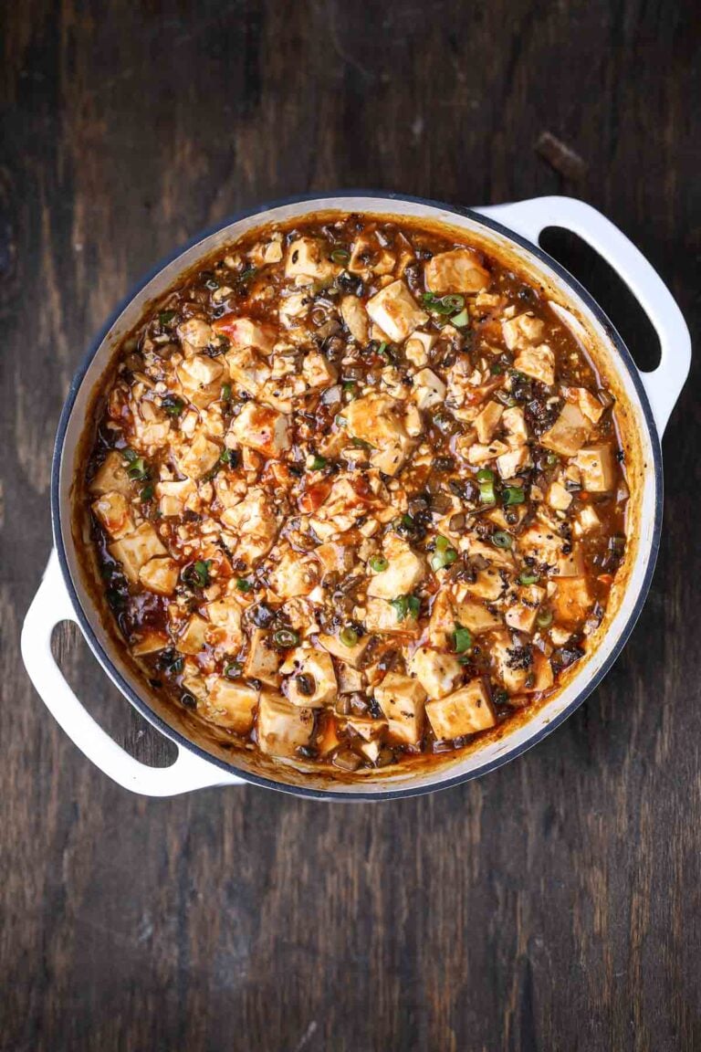 - Serve: Divide the tofu into bowls. Top with the reserved green onions, additional chili oil, and ground peppercorns to taste. Serve as is or over rice or with steamed greens, if desired.